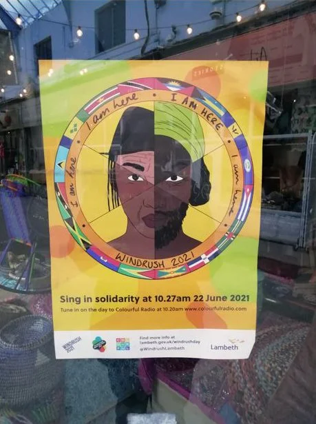 The theme for Windrush Day 2021 was I Am Here. The idea was to create something which represents respect, collective spirit and unity within a community. The phrase ‘go back home’ is something the Windrush generation and many people of colour have repeatedly heard regardless of whether or not Britain is their home. The reason I am here is because of the resilience and tenacity my grandparents embodied when moving from Jamaica to London. This emblem is in honour of the resilience and tenacity embodied by the entire Windrush generation..